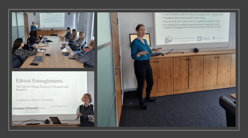 Presentations and discussions with the project teams of The Human Remains and Ethical Entanglements at the University of Liverpool. Photos by Liv Nilsson Stutz and Rita Peyroteo Stjerna.