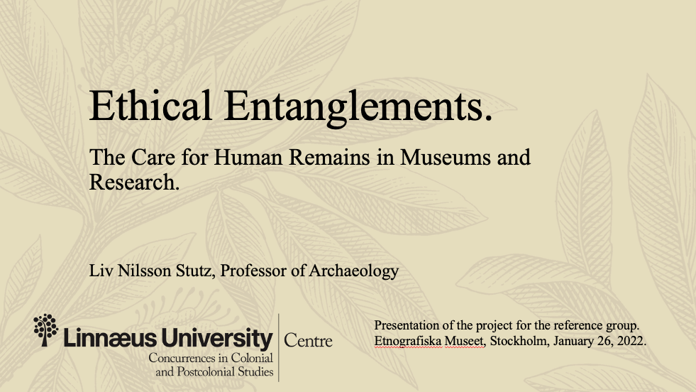 Last week (January 26-27) the researchers with Ethical Entanglements met with the advisory board for the project, including Fredrik Svanberg (Nordiska museet, Stockholm), Linda Andersson Burnett (Uppsala University), Olof Ljungström (Karolinska Instititutet), Malin Masterton (Örebro University), and Kicki Eldh (The Swedish National Heritage Board). The meeting was held at the Ethnographic Museum in Stockholm. The project members presented their respective work packages to the board and received invaluable feedback from the board members who represent a range of experiences and expertise that in different ways will enrich the project with perspectives from the museum world and Museology, Medical Ethics, the History of Ideas and Knowledge, Postcolonial Studies, and more broadly from a critical engagement with Humanities and Social Science research and its history.