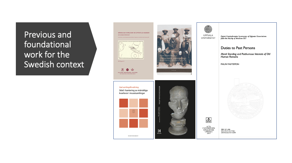 After the meeting, Mia Broné, objects coordinator for the four National Museums of World Culture (Etnografiska museet, Medelhavsmuseet, Östasiatiska museet, och Världskulturmuseet), presented the work that these museums in different ways have worked intentionally with their collections of human remains, and the rich and complex history of the collections. We finished with a visit to the storage area where we continued to discuss practice and ethics of care.