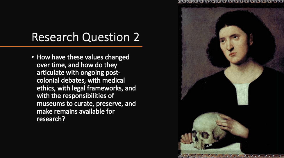 can the materiality of the human remains ever be separated froheorym the virtuality that unfolds from our encounter with them, and to what extent is can this virtuality be separated from the cultural context of the encounter? Is there such a thing as an invariably essential virtuality, or can it only emerge in each encounter, making it potentially endlessly variable?