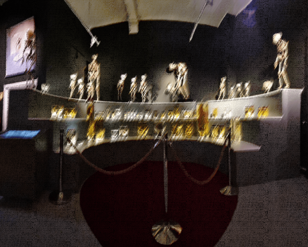View of the museum. The photograph has been manipulated to blur the human remains exhibited here without their consent.