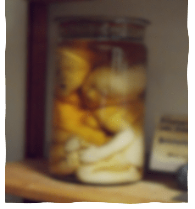 The anatomical collection arranged on stepped semi shelves organised in a semi-circle. Photo by Liv Nilsson Stutz (intentionally manipulated)
